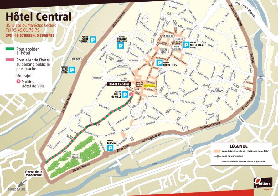 Hôtel Central Poitiers 3 étoiles Les Chambres Poitiers CATHÉDRALE SAINT-PIERRE HÔTEL DE VILLE JARDIN BLOSSAC PLACE DU MARCHE FUTUROSCOPE ILOT TISON Partagez cette information :